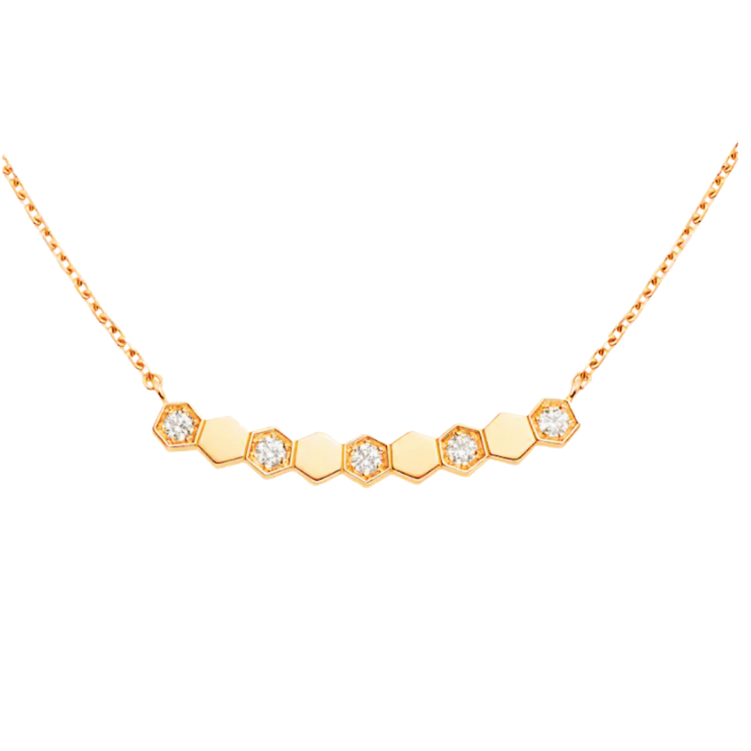 Bee pendant in yellow gold, set with semi-pavé, brilliant-cut diamonds.