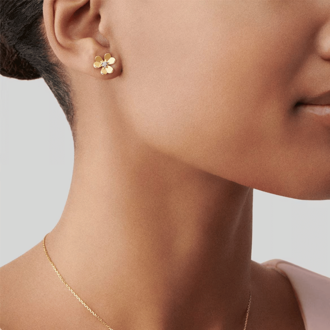 Frivole earrings, mini model, 18K yellow gold, round diamonds.