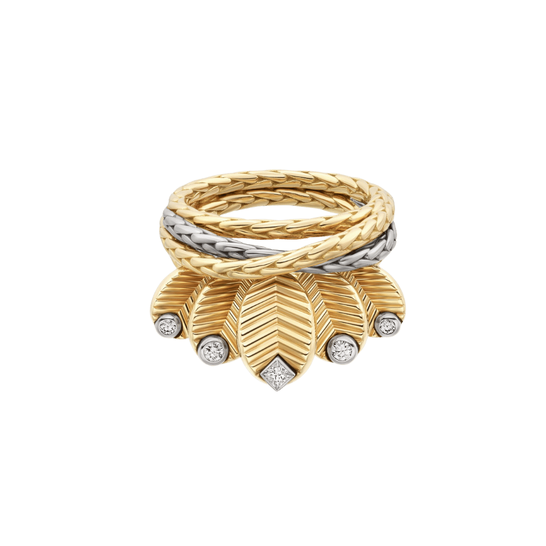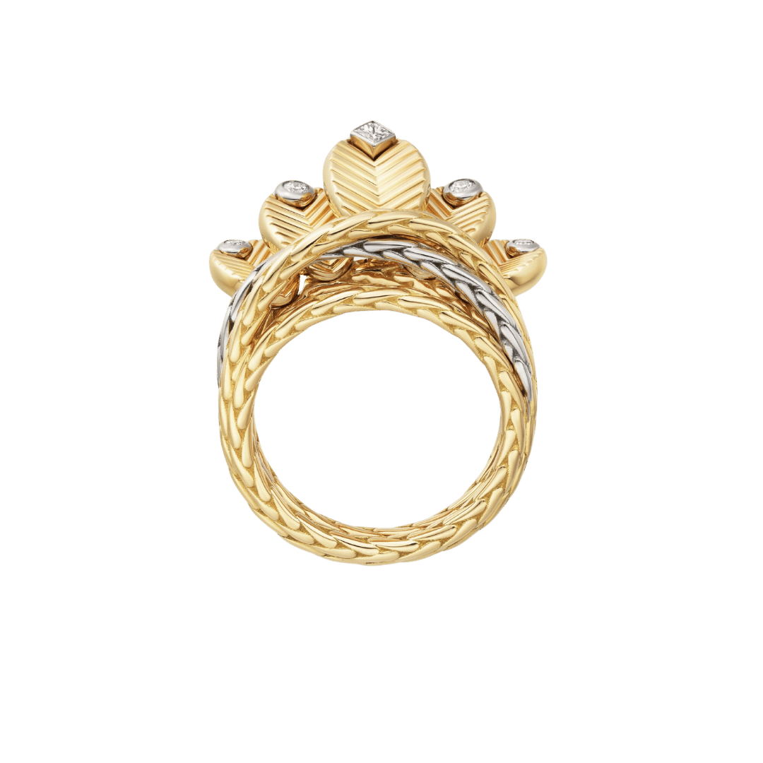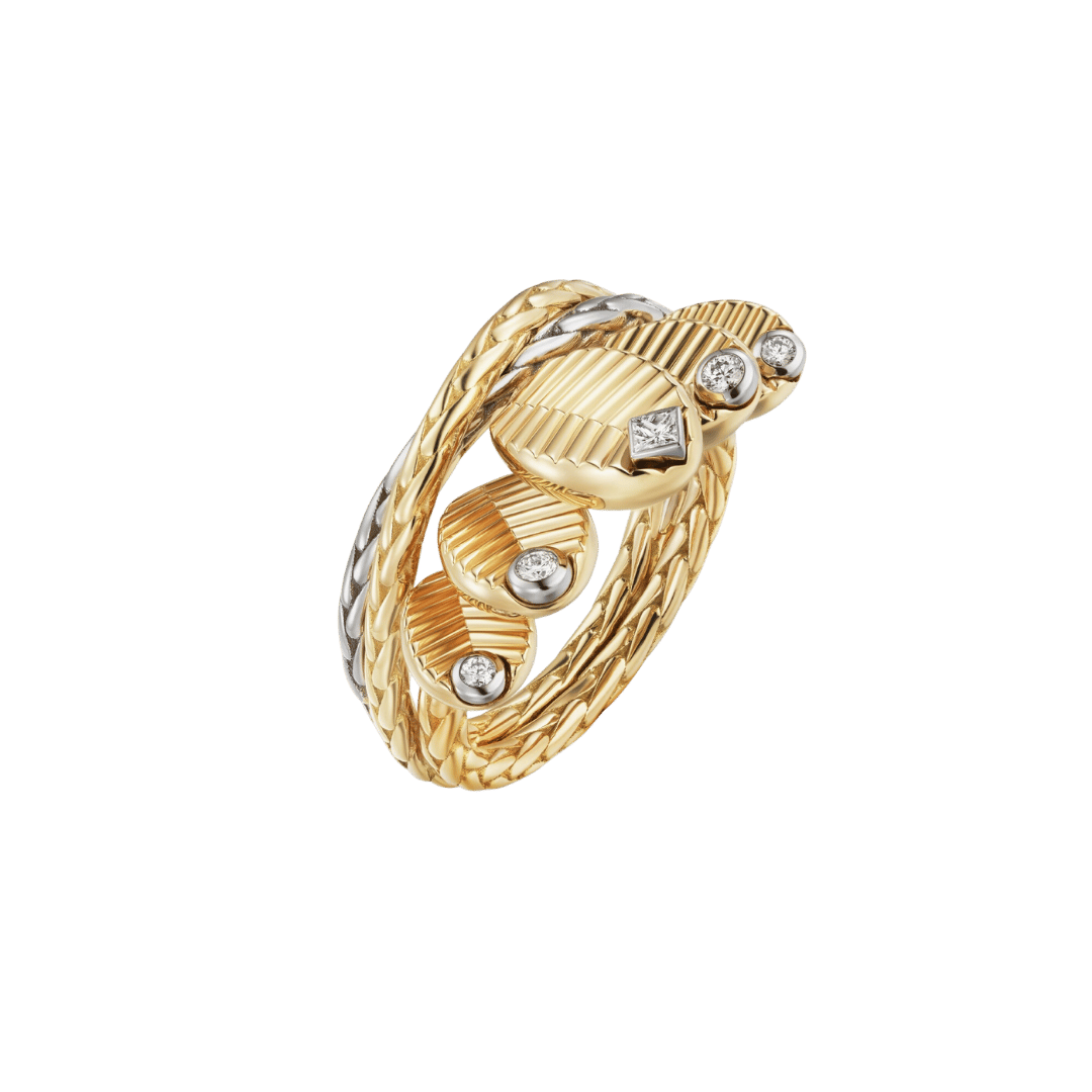Grain de café ring, 18k yellow gold , 18k white gold , set with 4 brilliant-cut diamonds and 1 princess-cut diamond totaling 0.10 carats