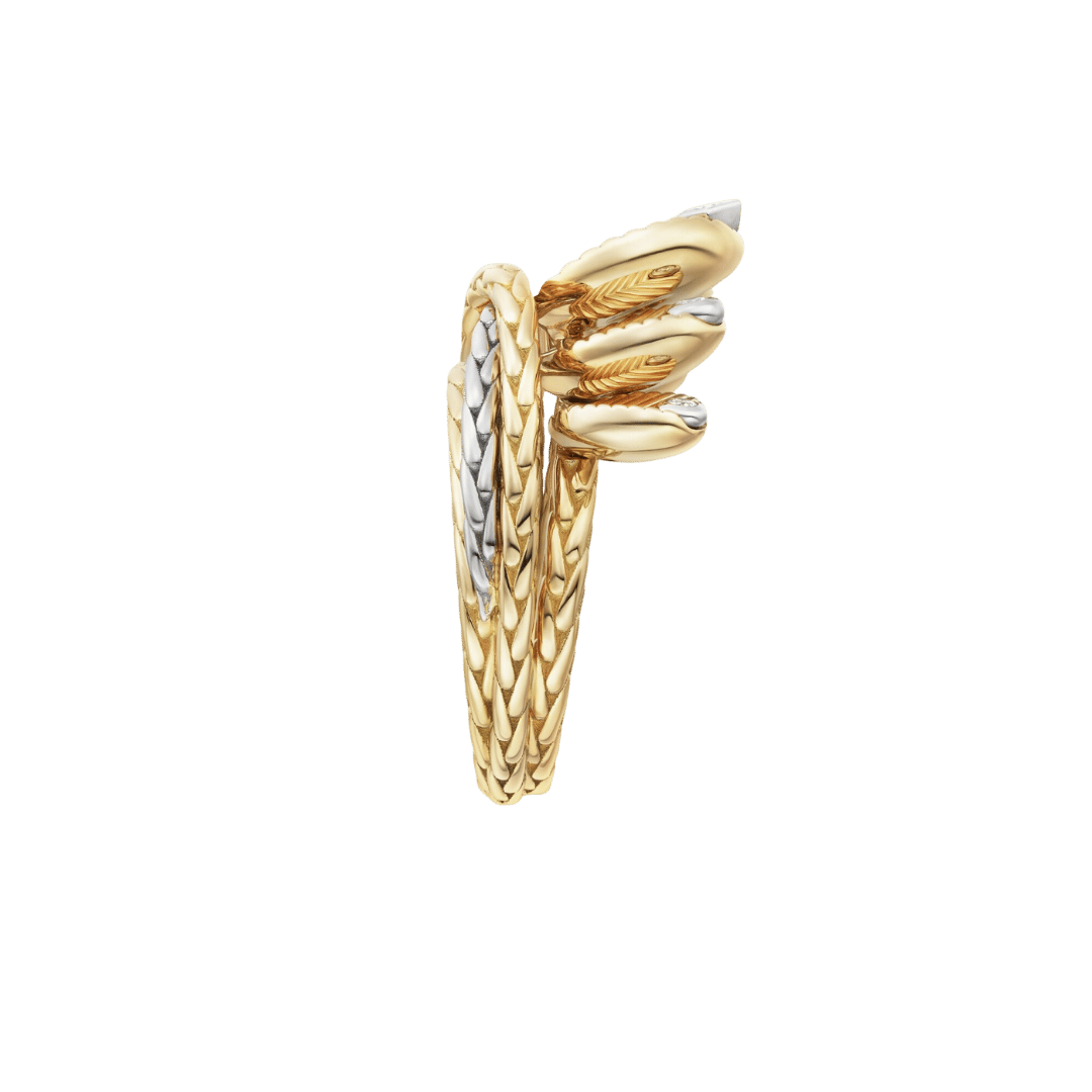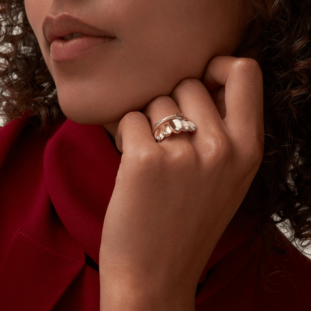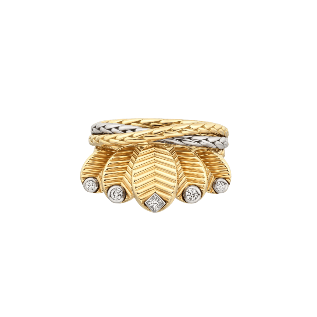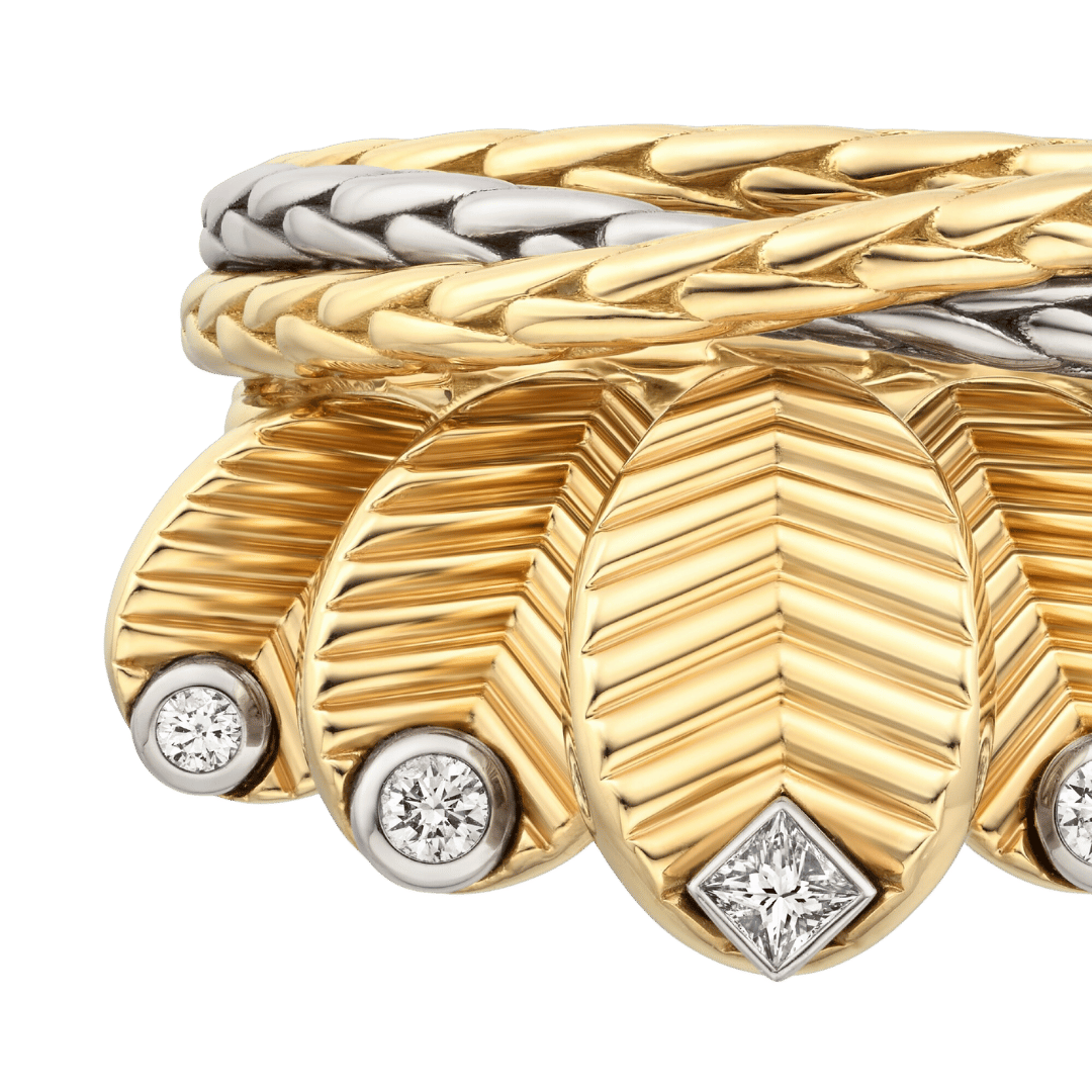 Grain de café ring, 18k yellow gold , 18k white gold , set with 4 brilliant-cut diamonds and 1 princess-cut diamond totaling 0.10 carats