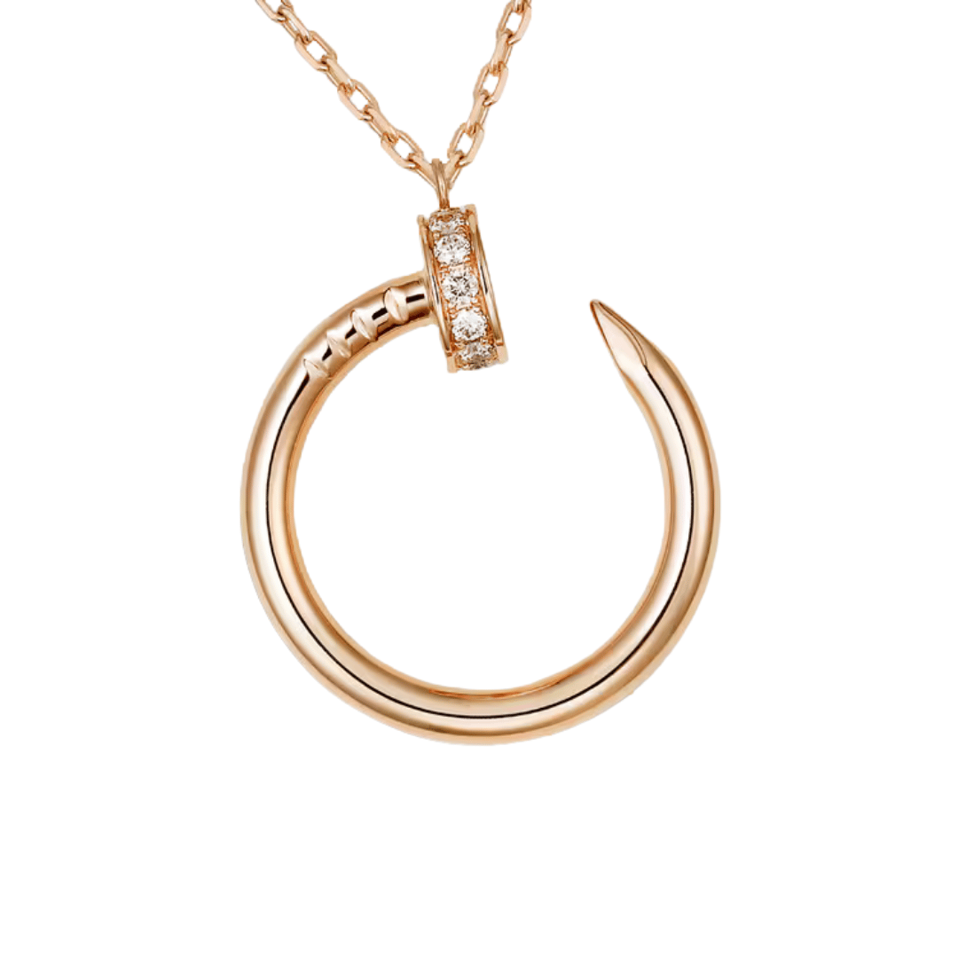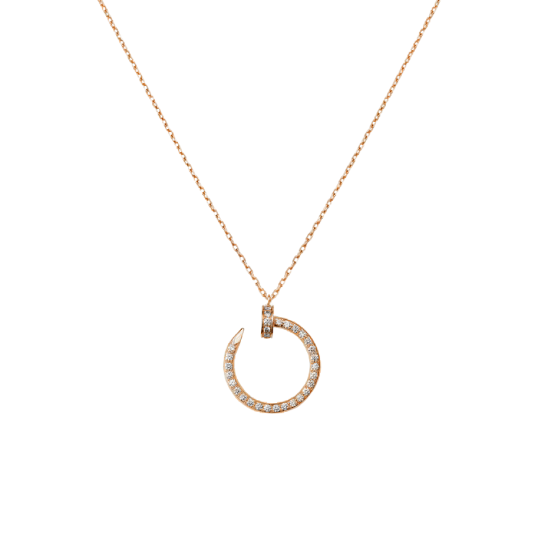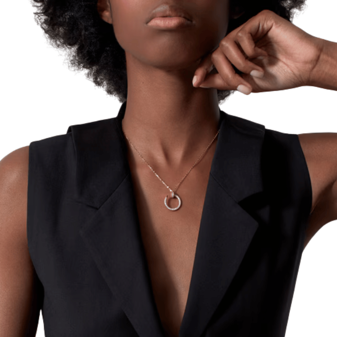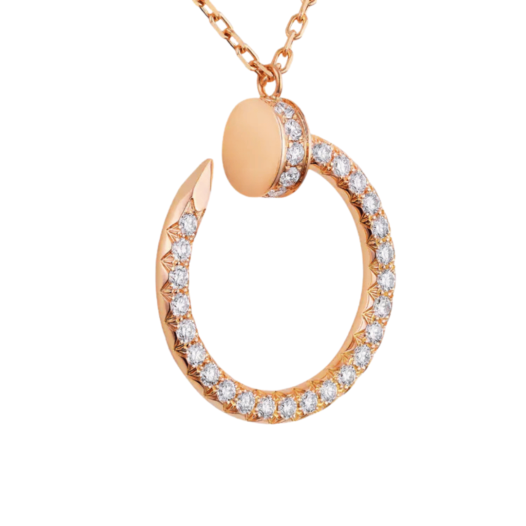 Juste un Clou necklace, 18K rose gold (750/1000), set with 36 brilliant-cut diamonds totaling 0.38 carats. Width: 2.2 mm. Inner diameter: 14.2 mm. Adjustable chain length: 42-46 cm