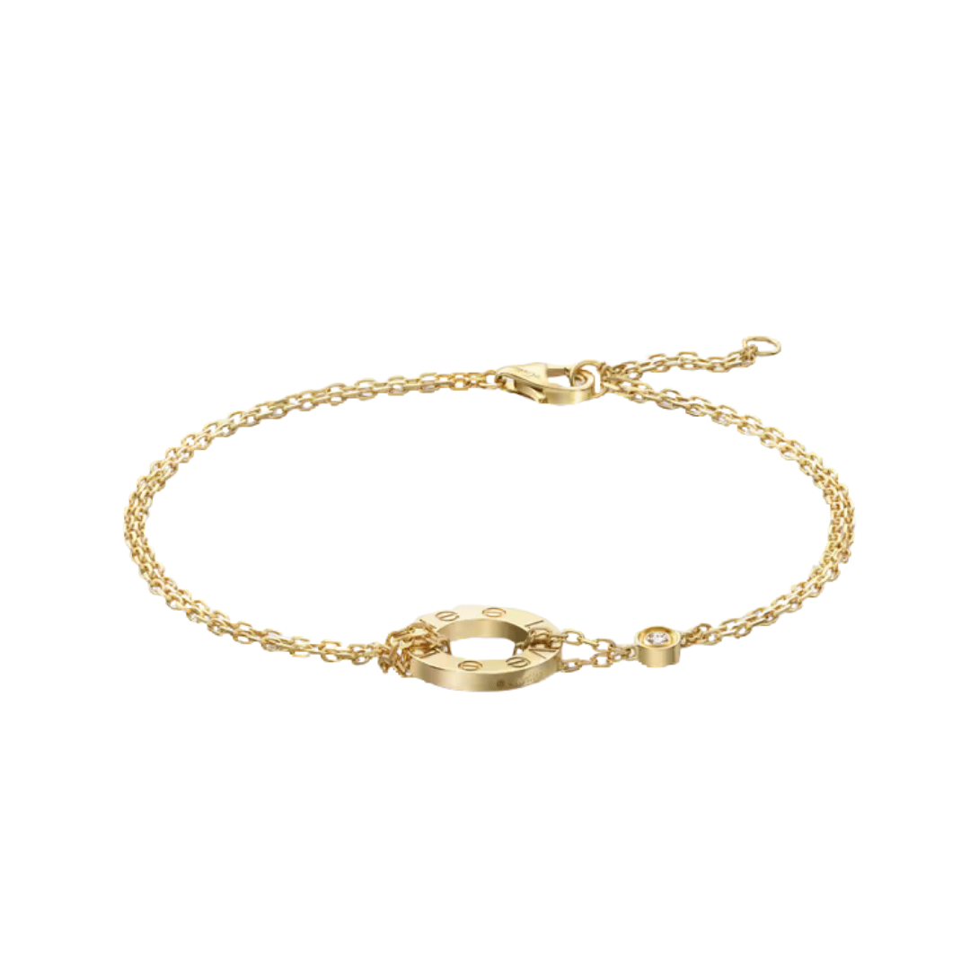 LOVE bracelet, 18K yellow gold (750/1000), set with 2 brilliant-cut diamonds totaling 0.03 carats.