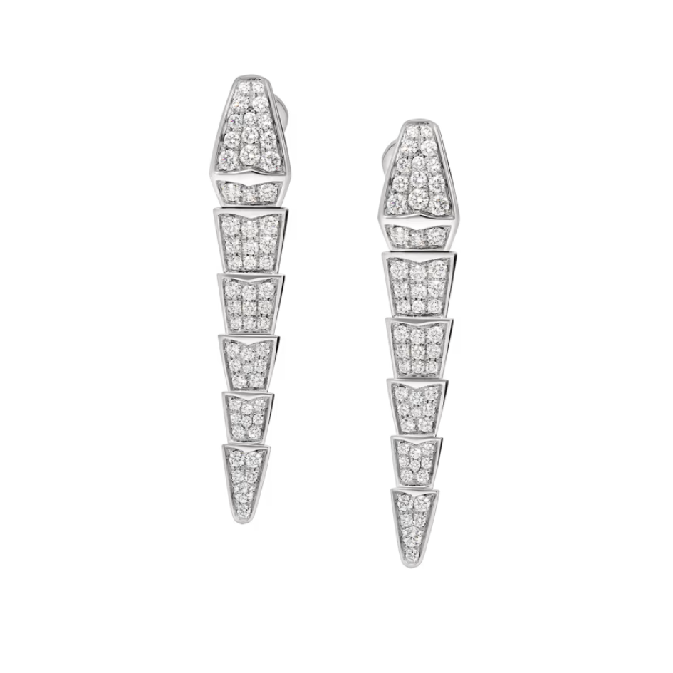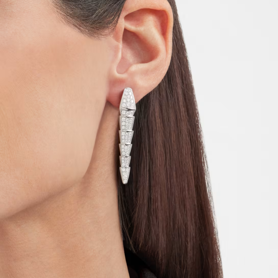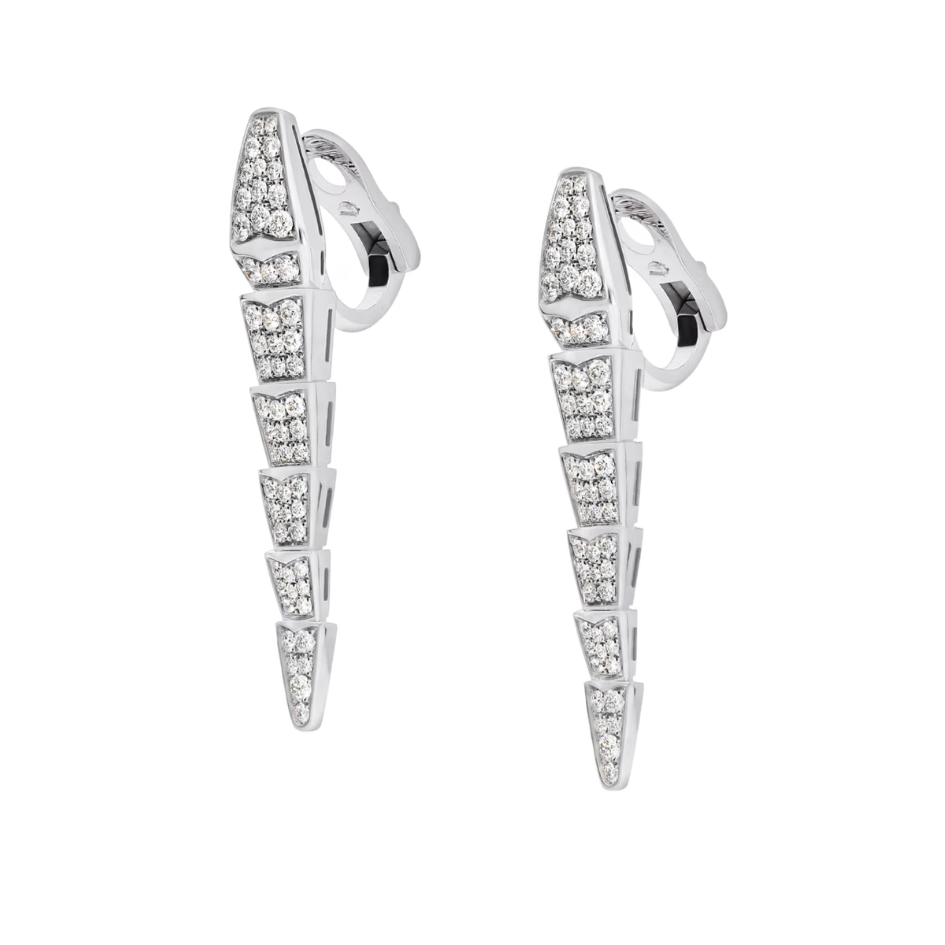 Serpenti Viper 18 kt white gold earrings set with full pavé diamonds