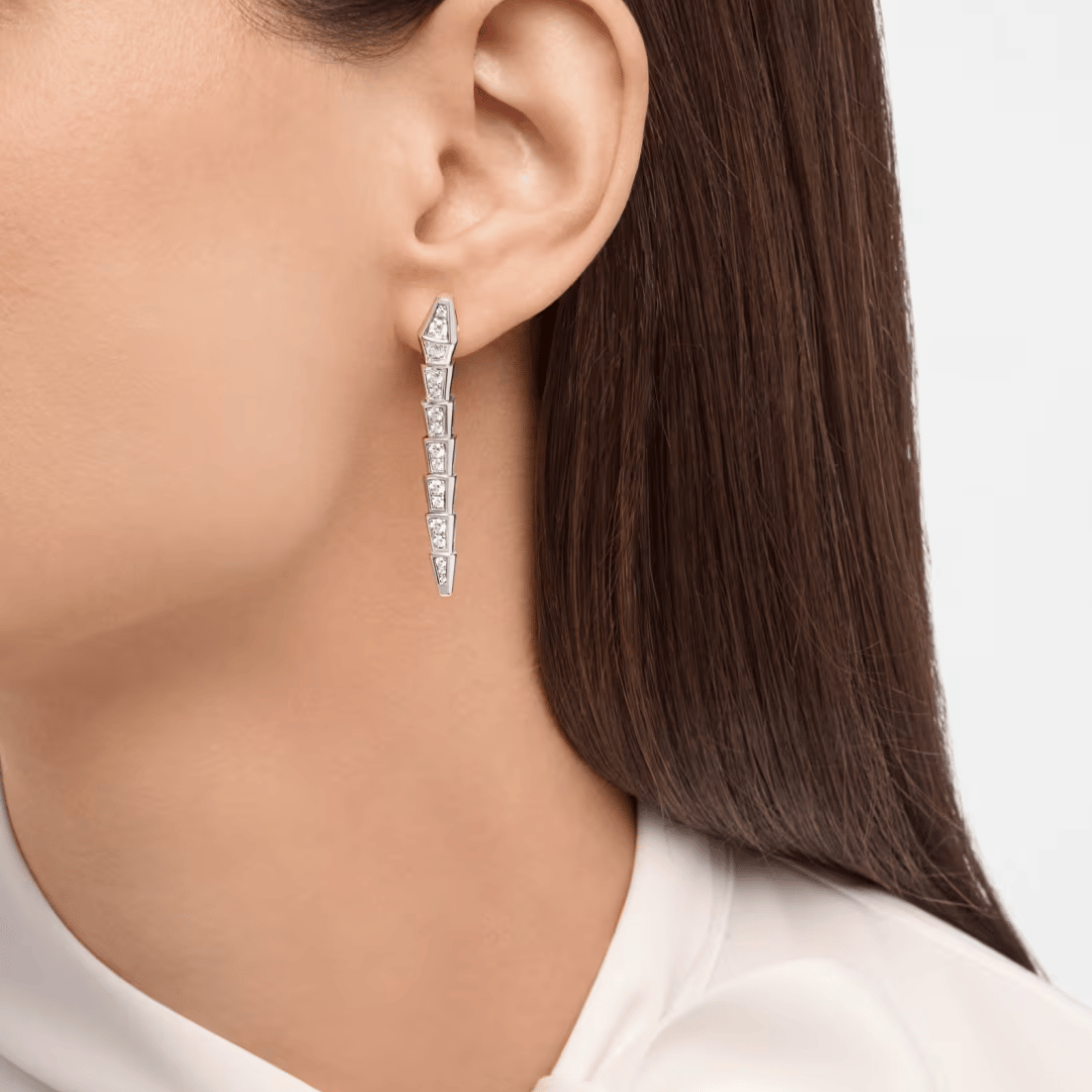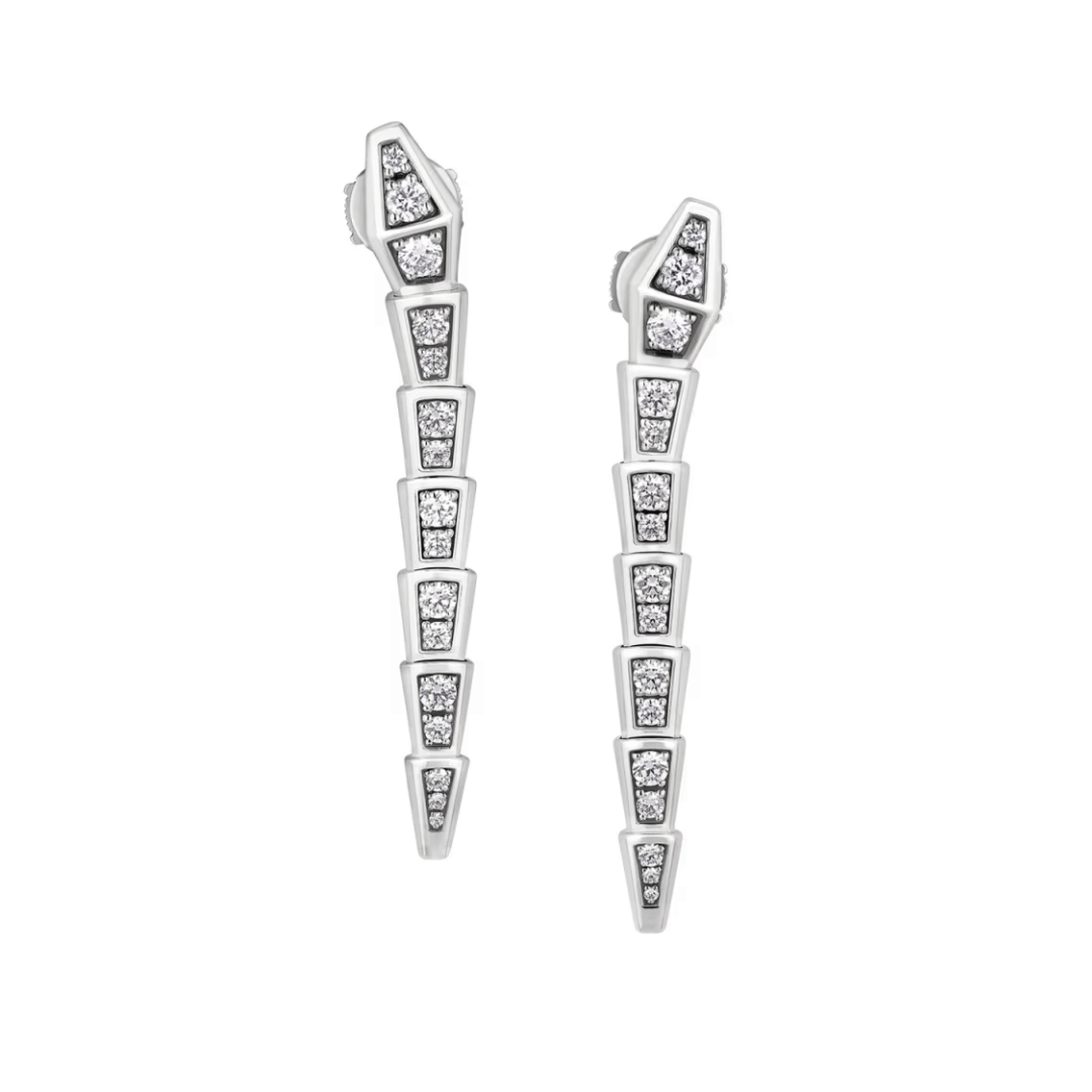 Serpenti Viper 18 kt white gold pendant earrings set with pavé diamonds