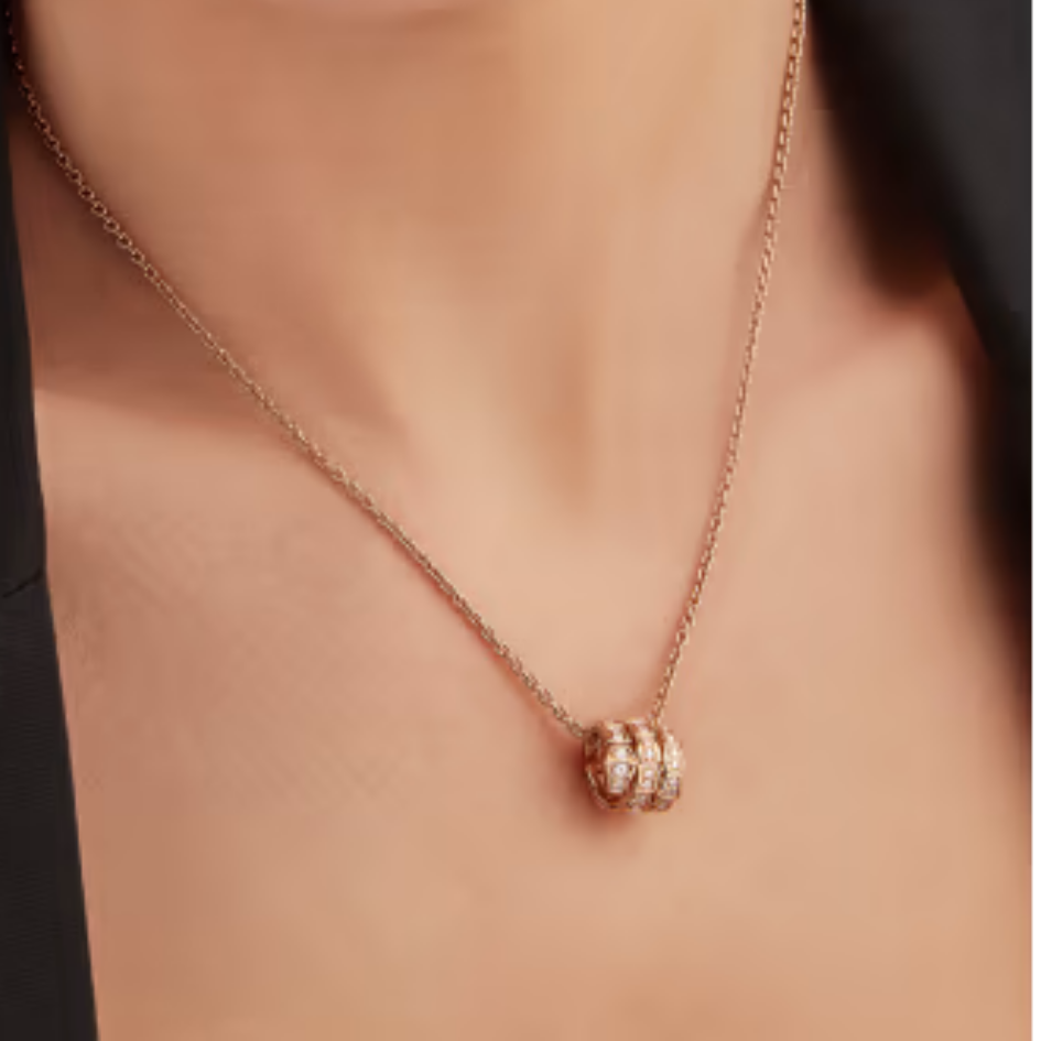Serpenti Viper 18 kt rose gold pendant necklace set with full pavé diamonds