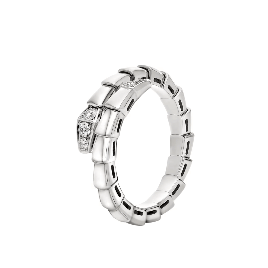 Serpenti Viper 18 kt white gold single-spiral ring set with demi pavé diamonds
