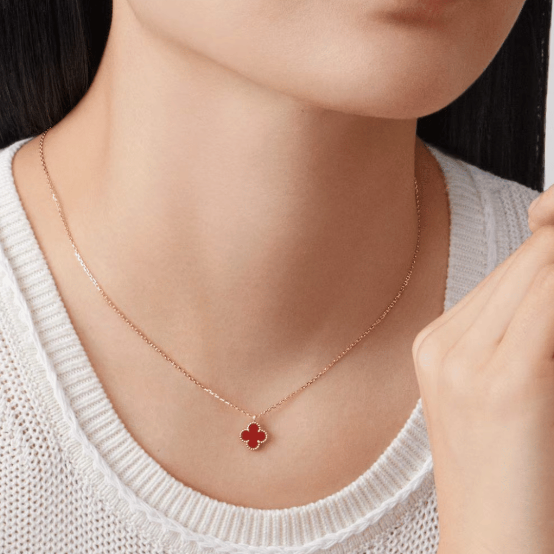 Sweet Alhambra pendant, 18K rose gold, Carnelian