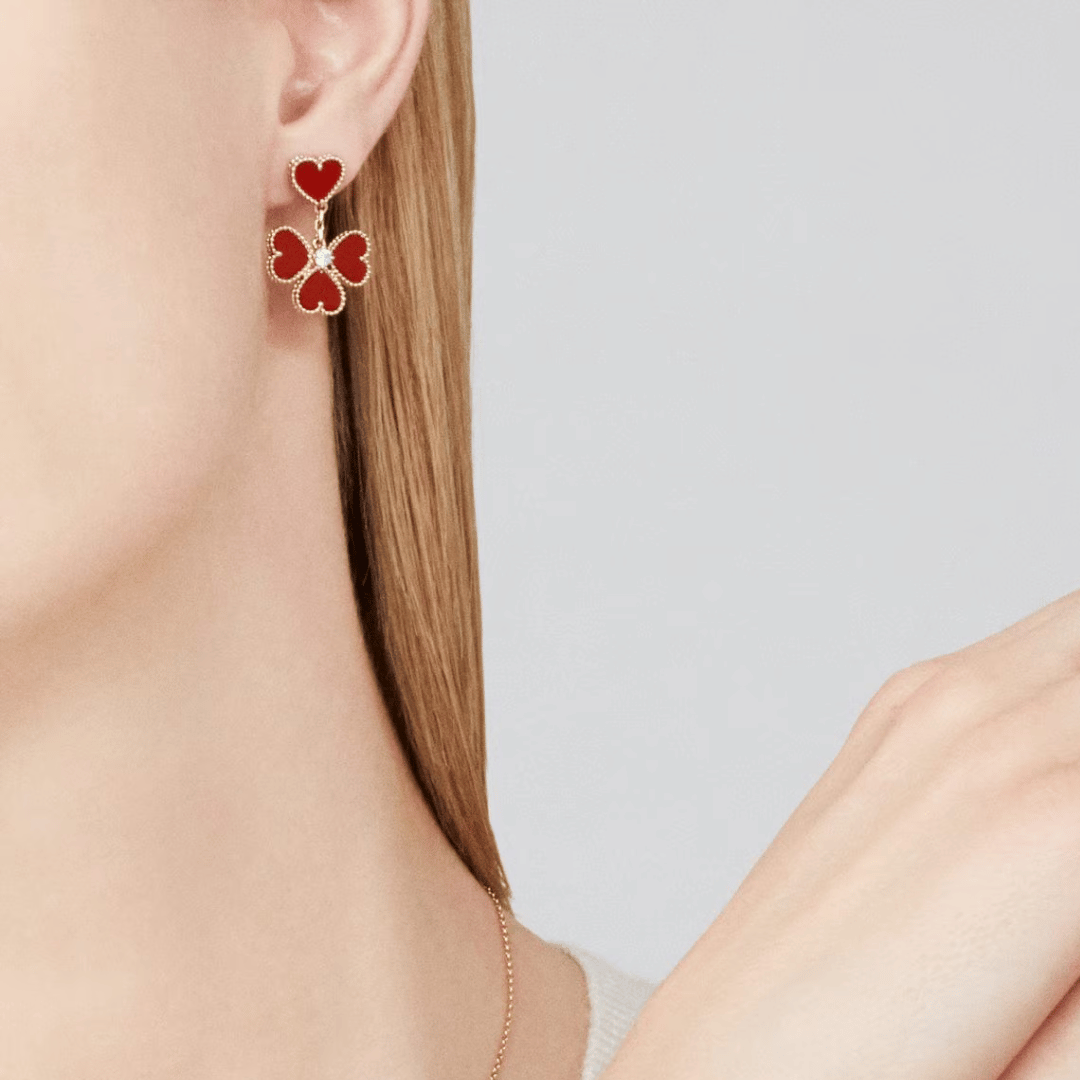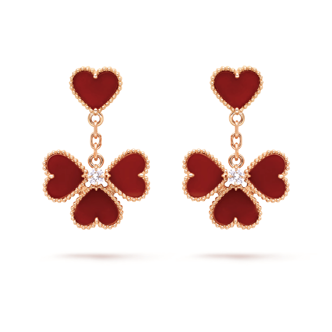 Sweet Hearts earrings, 18K rose gold, carnelian, round diamond