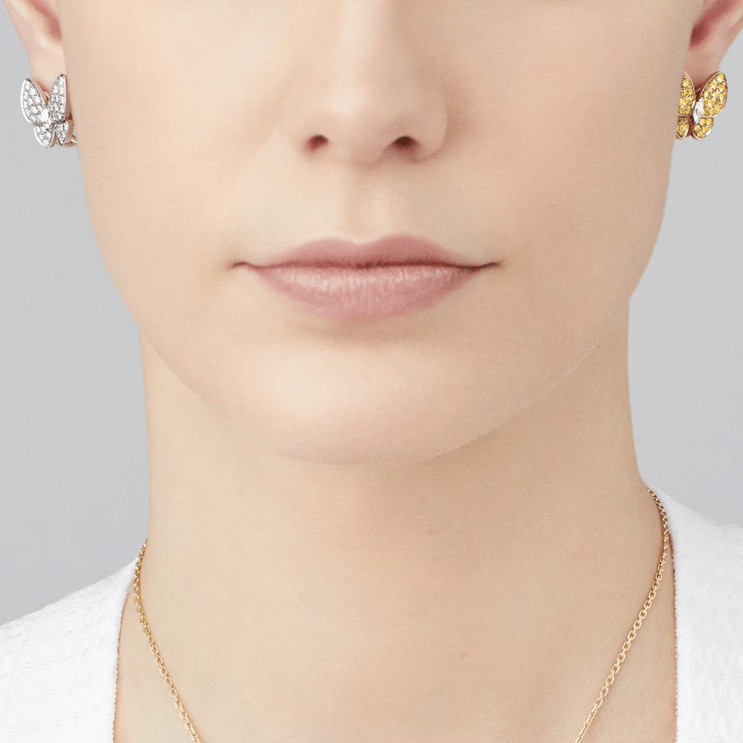 Two Butterfly earrings, 18K yellow gold, round yellow sapphires, rhodium plated 18K white gold, round and marquise-cut diamonds