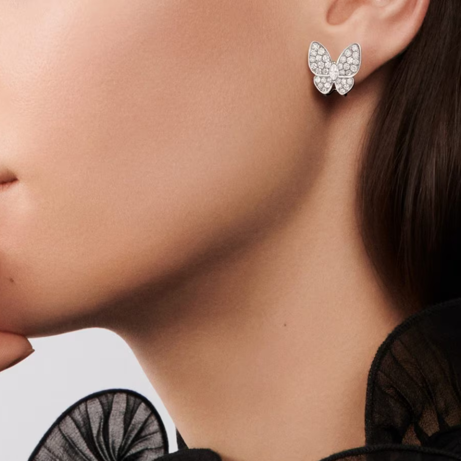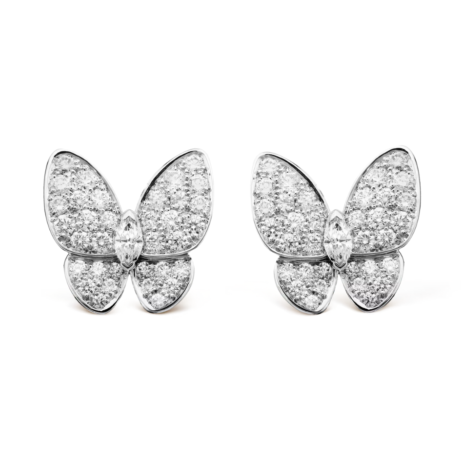 Two Butterfly earrings, 18K white gold, round and marquise-cut diamonds;