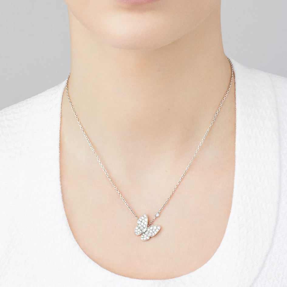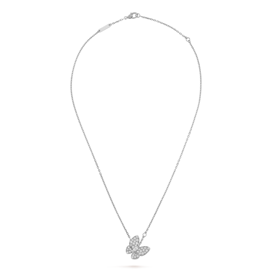 Two Butterfly pendant, 18K white gold, round and marquise-cut diamonds