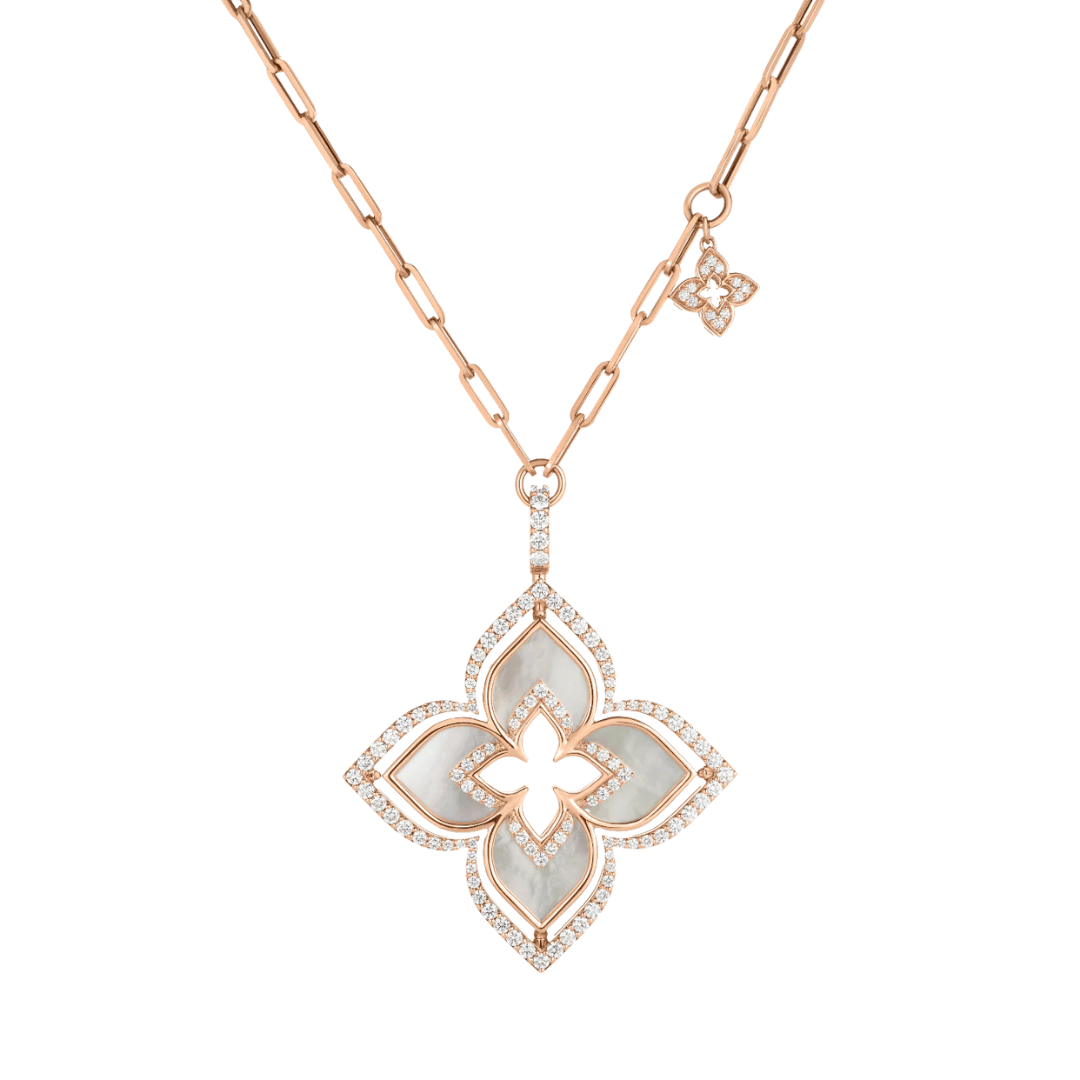 Venetian Princess collar with diamonds and Mother of Pearl in 18k rose gold