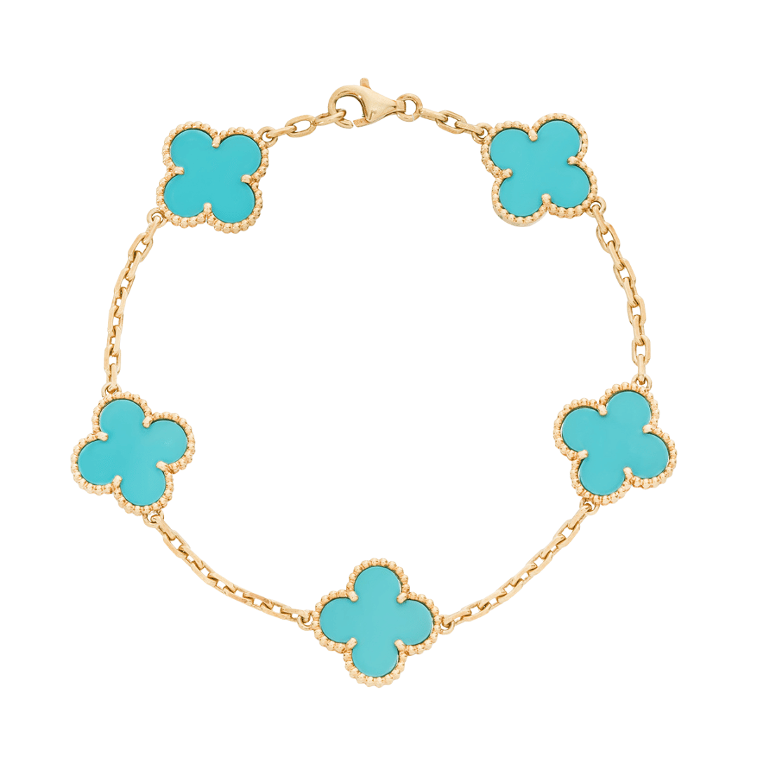 Vintage Alhambra bracelet, 5 motifs, 18K yellow gold, Turquoise