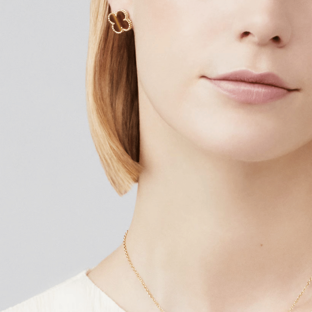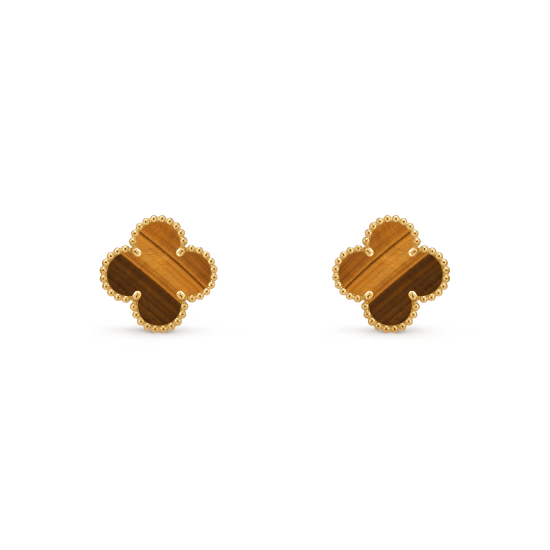 Vintage Alhambra earrings, 18K Yellow gold, Tiger Eye