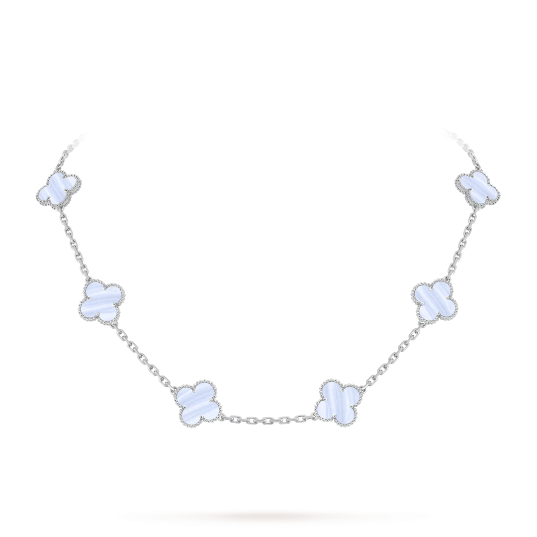 Vintage Alhambra necklace, 10 motifs, 18K white gold, Chalcedony