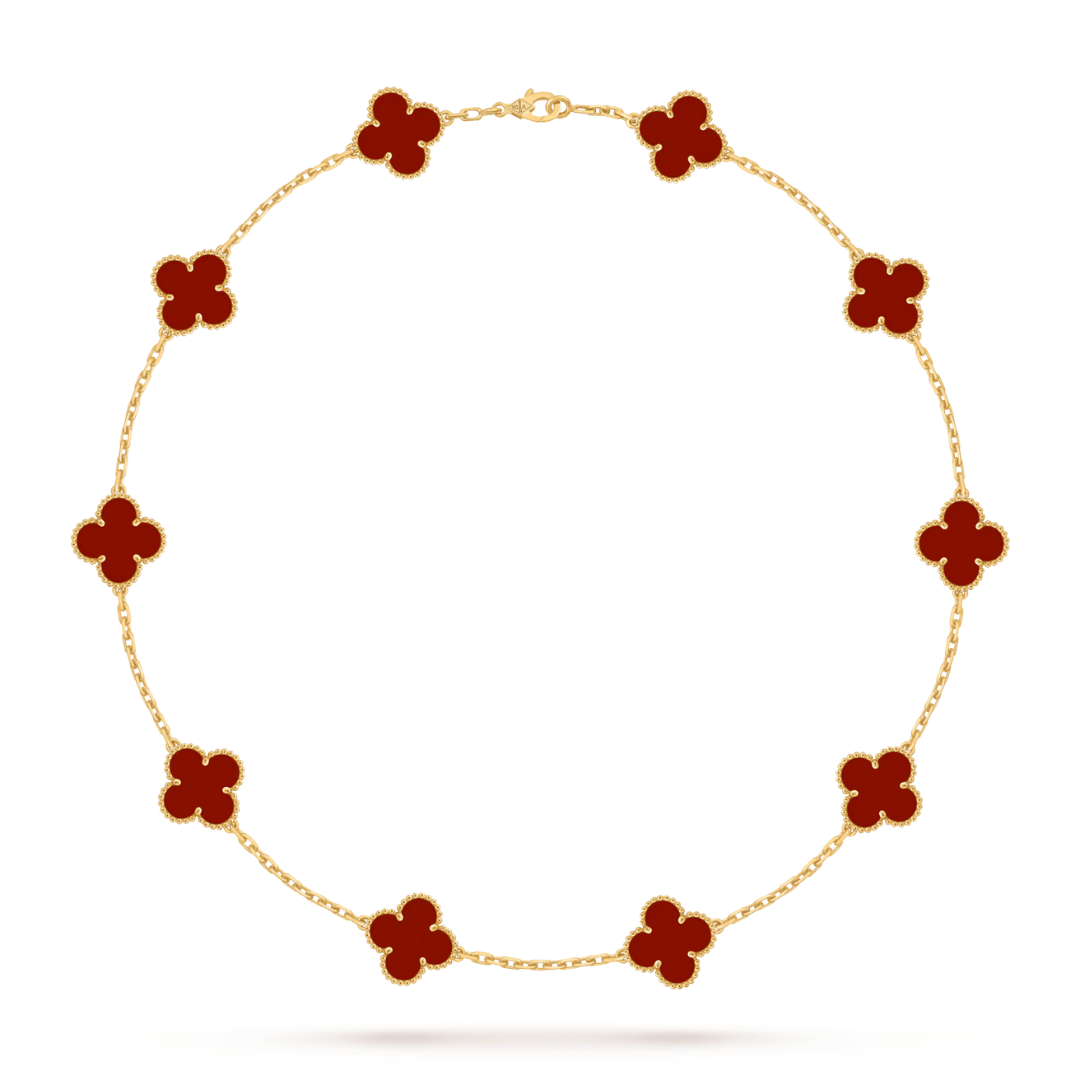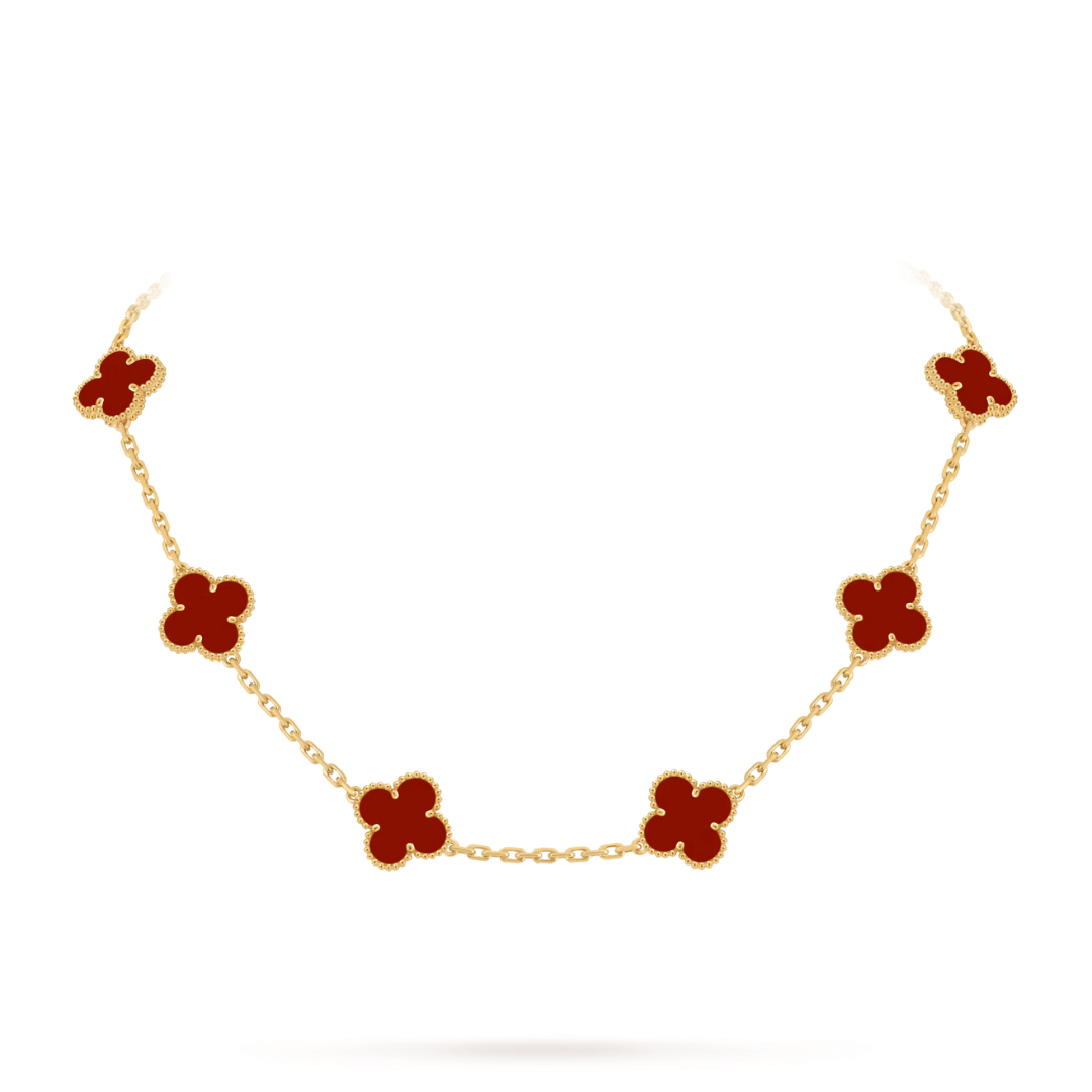 Vintage Alhambra necklace, 10 motifs, 18K yellow gold, Carnelian