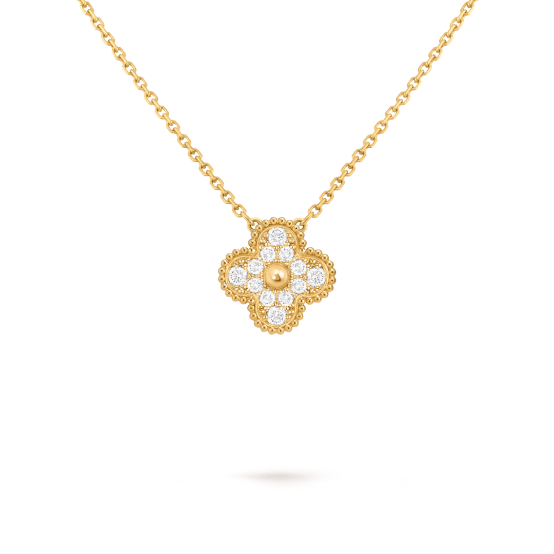 - Vintage Alhambra pendant, 18K yellow gold, round diamonds